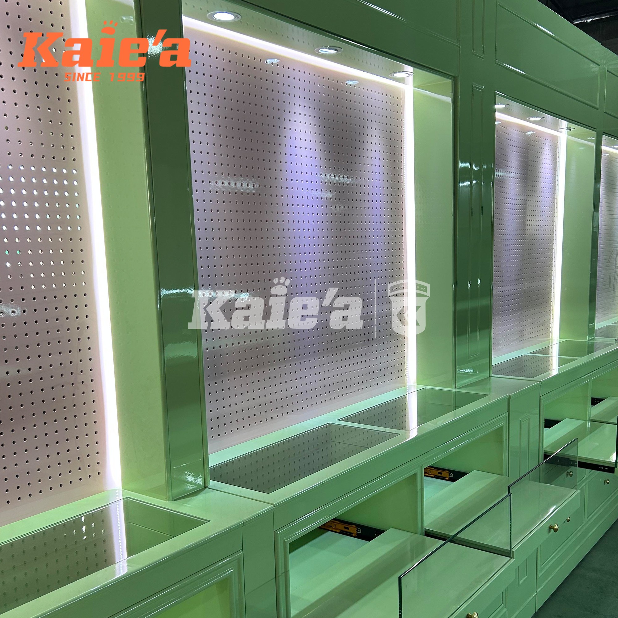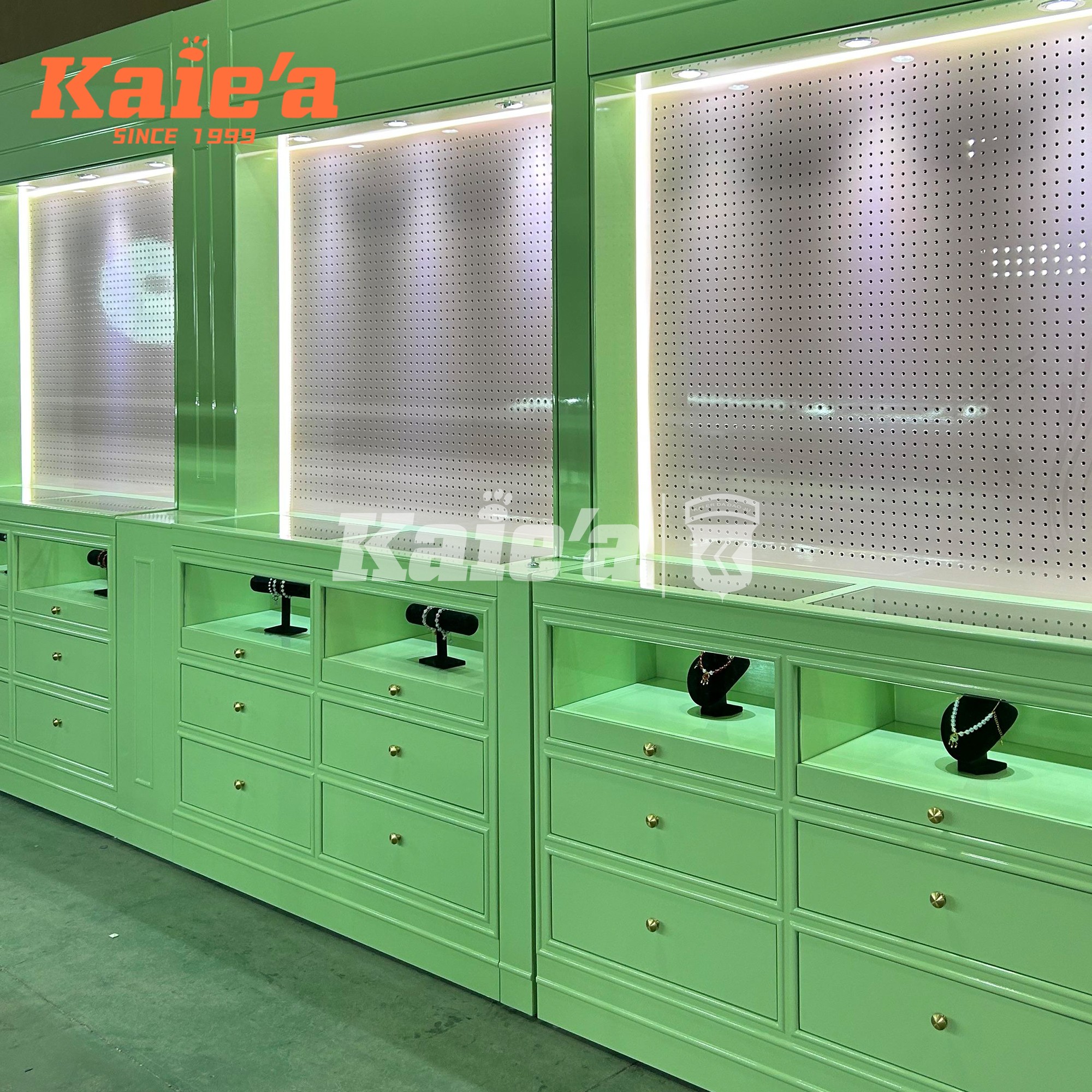By combining modern design with a distinctive green color palette, this cabinet not only elevates jewelry presentation but also strengthens brand recognition. It’s the ideal solution for retailers aiming to differentiate their stores with both elegance and individuality.