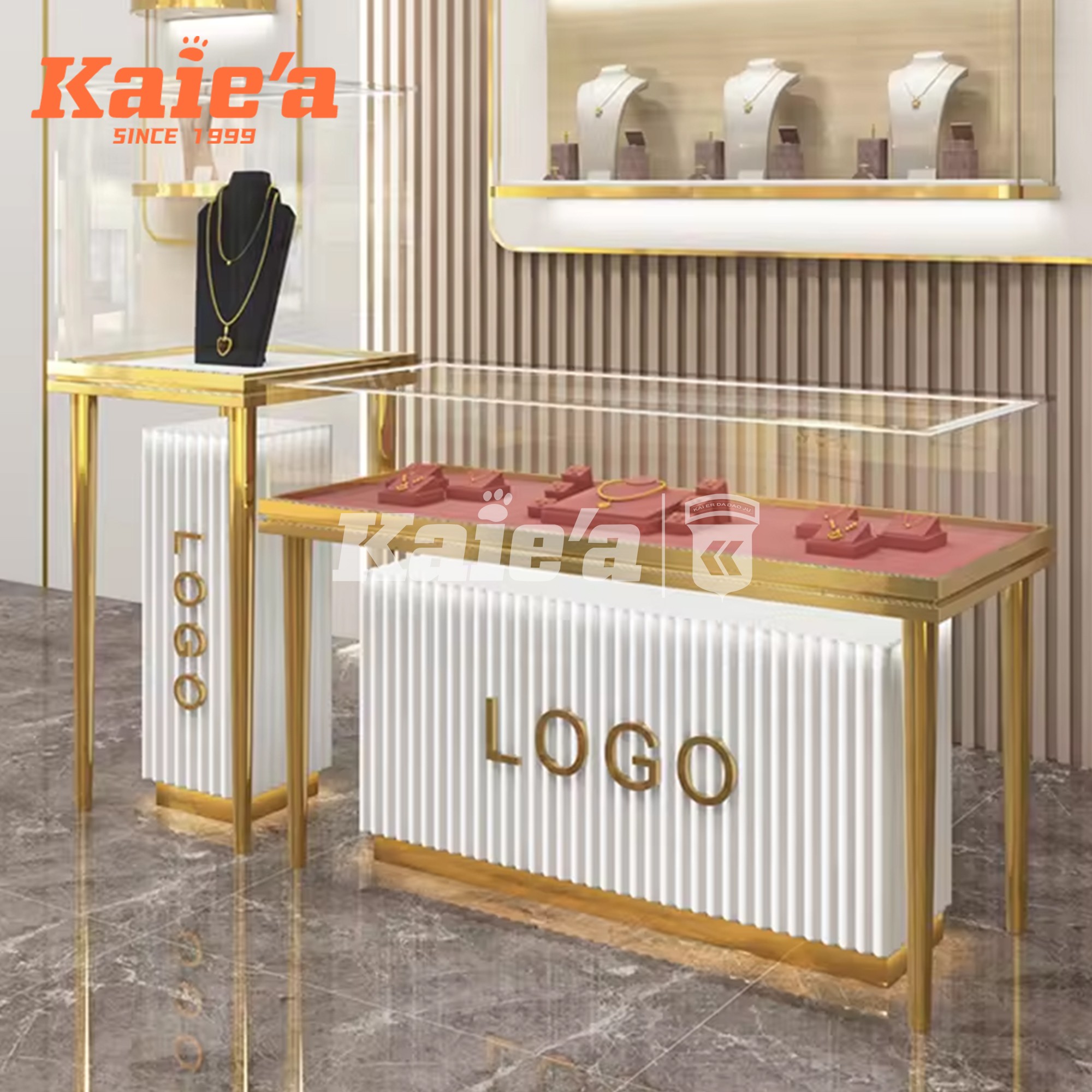 Elevate your retail display with our custom gold jewelry cabinet, a stunning combination of luxury and practicality. Specially crafted for high-end jewelry shops and designer boutiques, this cabinet ensures every piece shines with maximum brilliance.